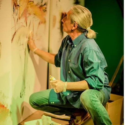 Nikos Kryonidis was born in Xanthi, a small and picturesque town of North Greece in 1963.He graduated from the School of Architecture of the Aristotle University of Thessaloniki.He realized many solo and group exhibitionsin Greece and abroad. His works are found in the Macedonian Museum of Contemporary Art and the State Museum of Contemporary Art in Thessaloniki , the American College of Greece in Athens and in private collections. He paints with his fingers and depicts pictureless actions – traces on small and largesurfacesof paper or canvas. He designs the human body, illustrates animals , creates compositions with objects of common use and plastic models of animals on small wall surfaces or in large installations in internal spaces or in the country.He writes texts about art, poems and songs which he performs on stage.