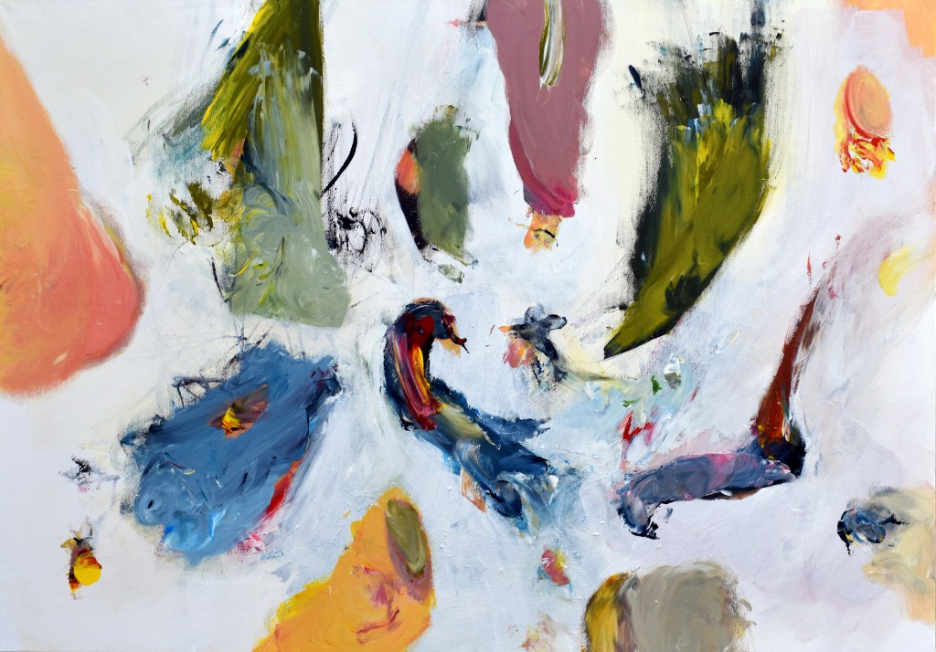 Art painting and image as a whole bigger than the sum of the individual visible. Where the limits of the human body are also the contour of the animal, the landscape it encloses. I negotiate the entire message and the objective image with forms and colours tangential to emotional values.